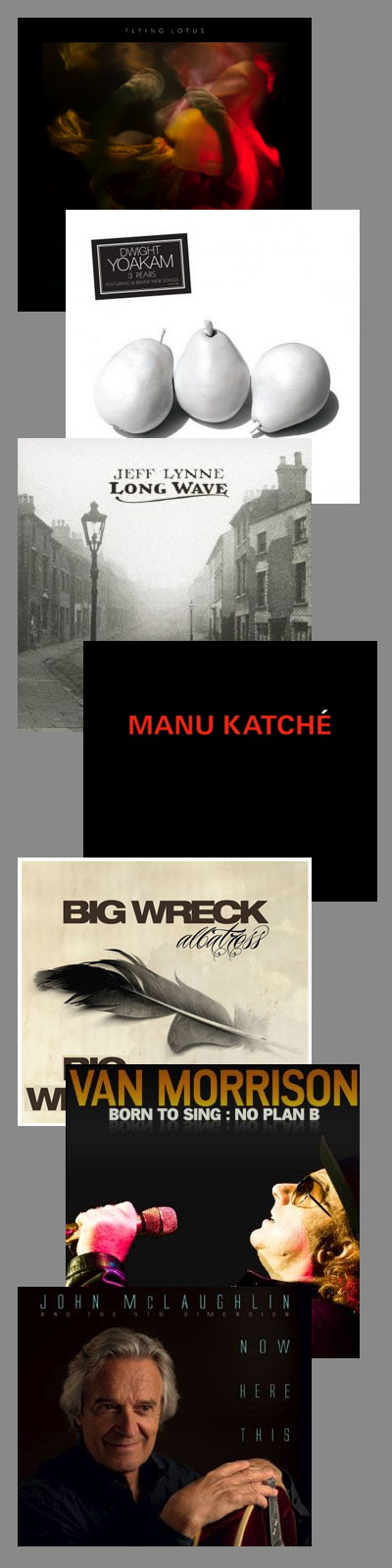 • “Until The Quiet Comes” by Flying Lotus. This is my sort of electronica: richly detailed, sumptuous, quirky, edged with darkness, possessing a jazzy flair, and endlessly inventive. The jazzy element has a genealogy, as Steven Ellison (who is Flying Lotus) is the great-nephew of Alice Coltrane, wife of the late, legendary ‘Trane. Includes a track, “Electric Candyman”, with a certain Thom Yorke. A near perfect late night album, this rewards repeated listens.