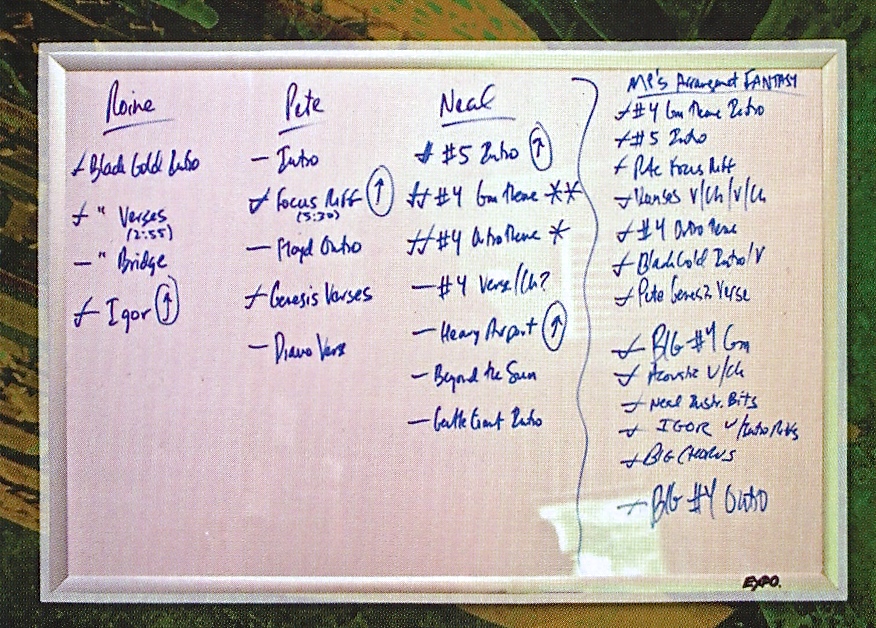 One picture in the accompanying booklet even mysteriously shows a white board with the parts of each member. Were I still sixteen, I would spend hours trying to decipher the meaning of it all in some gnostic fashion. Sadly, that was 30 years ago, and I have no such time, though the desire remains.