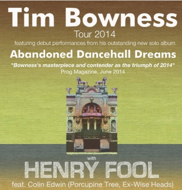 Following the release of his new solo album, recently released via Inside Out to widespread critical acclaim, Tim Bowness together with Henry Fool (feat. Colin Edwin) play two UK dates on 11 July at The Borderline, London and 12 July at The Wesley Centre, Maltby.
