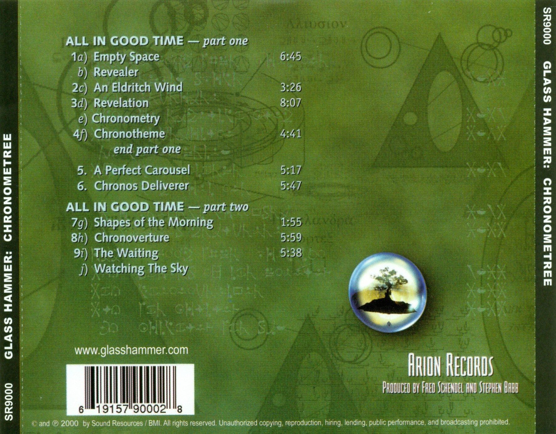 Glass Hammer, CHRONOMETREE (Sound Resources, 2000). Artists: Steve Babb and Fred Schendel with Brad Marler; Walter Moore; Arjen Lucaseen; Terry Clouse; Susie Warren Bogdanowicz; Sarah Snydor; and Jamie Watkins.