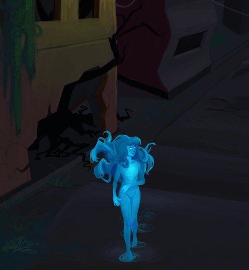 Suzi is then told the story of Enantiodromia, a leitmaiden of ancient legend who is said to be part of the origin of this dream world’s turn to darkness. Long ago, she brought balance to the land with her fair hand, taking opposing extremes and bringing them together. One day, as she was sitting under the willows by a river, a spell was cast upon her by a mysterious shadow. Her fair hand turned black and she plummeted to the bottom of the river, where she sleeps forevermore. The river itself became cursed, and calls a siren song to all who come near to drown themselves in sweet annihilation. As a ghost walking between worlds, Metanoia tells her, Suzi can do things the inhabitants of this world cannot, and if she’s able to get to the sleeping Enantiodromia and wake her up, she may be able to help her reunite with her body. Suzi sets out on a journey to the river. (Enantiodromia, Specter Lyfe)