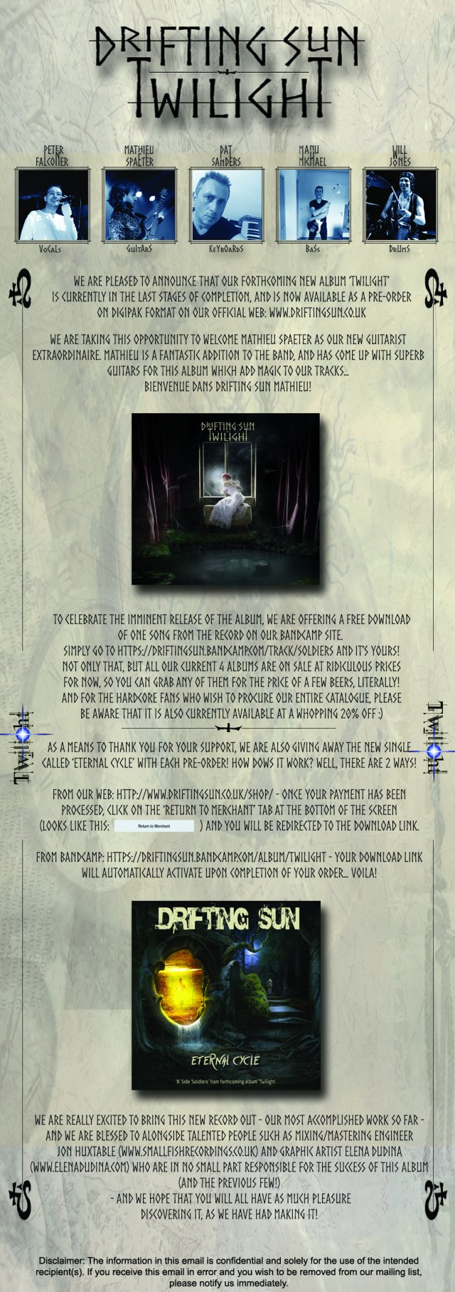 This is to announce that the new Drifting Sun is now officially available to purchase as a pre-order from our official web and from our Bandcamp page, see details below.