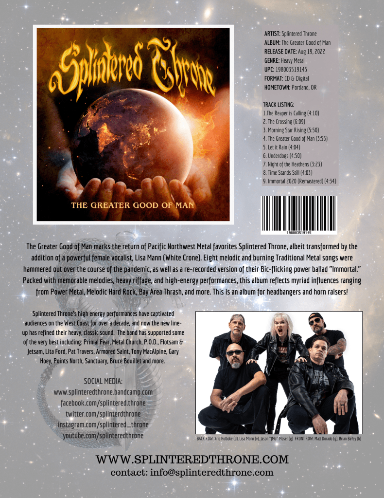 Keep an eye on https://splinteredthrone.bandcamp.com/ for this Friday, indeed, but you can also right now order CD copies there of Splintered Crone’s 2018 metal masterpiece, Redline. Don’t be misled by its first three tracks, which are relatively traditional; the album unfolds with undeniable prog sensibilities with a veritable cascade of standout tracks like “Nature’s Design,” “Fog of War,” and “Inside Looking Out,” and then finally crescendoes into the absolutely epic “Take It to the Grave.”