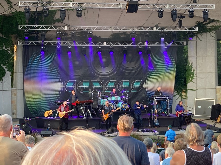 Fifty years ago, if you’d told me I’d be sitting on a hill watching a young couple in front of me swaying to a song about Albert Einstein — “Portrait (He Knew)”, in case you were wondering — I’m not sure I would have believed you. But even though last night’s weather was about as perfect as you can imagine, the current edition of Kansas whipped up an unstoppable musical storm that pulled their eager audience into that kind of a vortex. Classical gas, prog rock, heavy metal, folky balladry, lyrics about seeking and occasionally finding – it was all there, and it all worked to near-perfection. If you caught Kansas back then, they’ll still take you there effortlessly; if you’ve discovered them since then, they won’t disappoint.