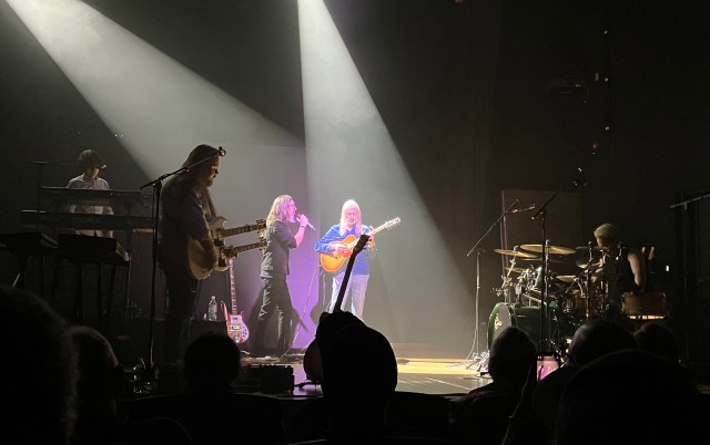 Not many bands stick around after a show to meet and greet with the fans without charging a fee for it. It is very generous of them. On my way out of the auditorium I stopped by the sound booth where mixing mastermind Rob Aubrey was still sitting. I don’t know of any other bands who have the person who mixes all of their albums also tour with them and mix their shows, but he does an absolutely fantastic job. It isn’t easy to have to create a mix for each venue, with every auditorium and club having its own acoustic challenges. Overall I’d say Rob nailed it. From my spot in the middle of the fourth row, the mix was very lush and not too loud. There was no crunchy distortion that too often happens at rock concerts from the sheer noise level. I didn’t need earplugs. In fact, knowing that Rob would be mixing the show, I didn’t even bring them. The only comment I would make is the violin could have been a little louder in the mix at points. I had brought my copy of The Likes Of Us on CD hoping to have the band sign it, and I asked Rob to sign it, which he graciously did. I told him it was one of the best-mixed concerts I had been to, and I really mean that. Steve Hackett’s shows are the only thing that even comes close.