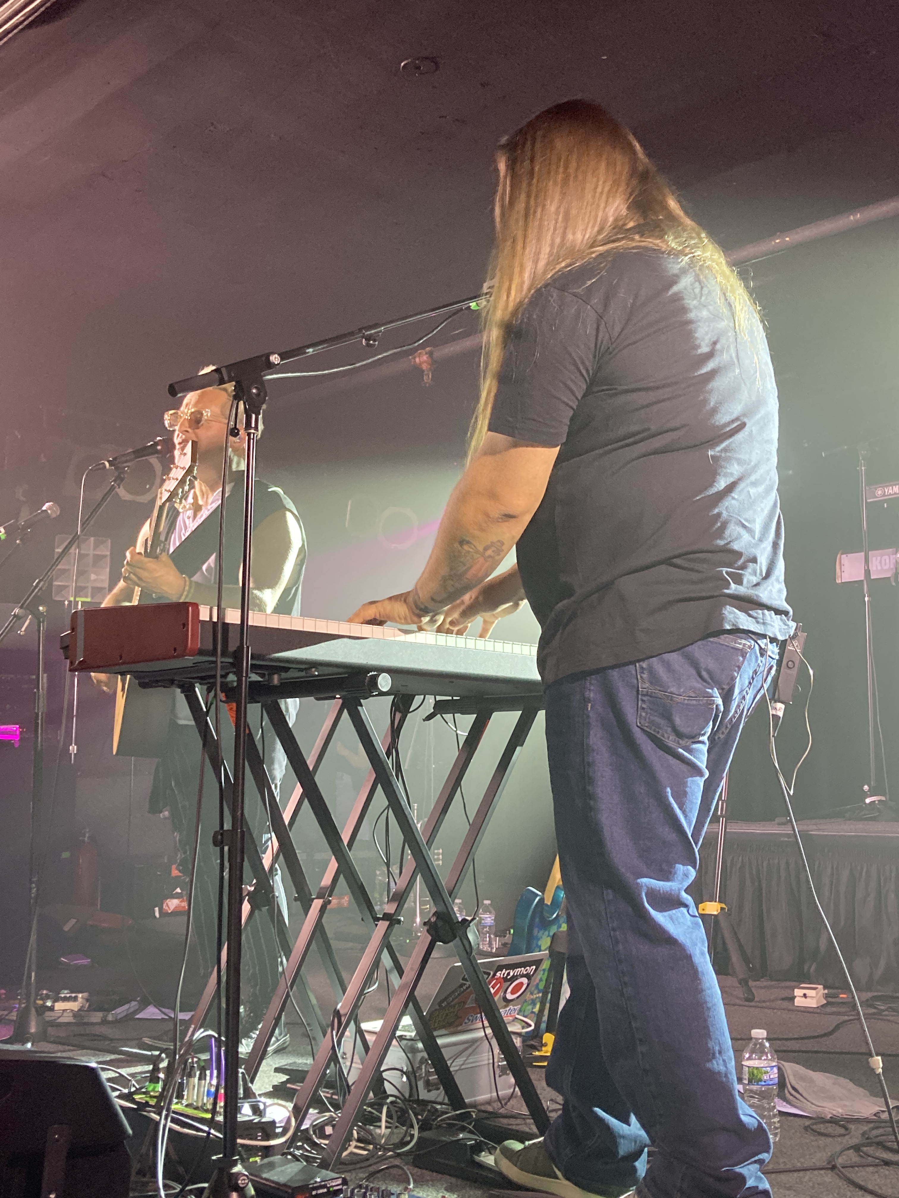 Kudos to engineer extraordinaire Rob Aubrey, though; with everything else onstage running through the PA (no amps!) and judicious use of floor speakers, even the front row heard well-balanced, full-spectrum sound (at least with earplugs in). But I’m getting ahead of myself . . .