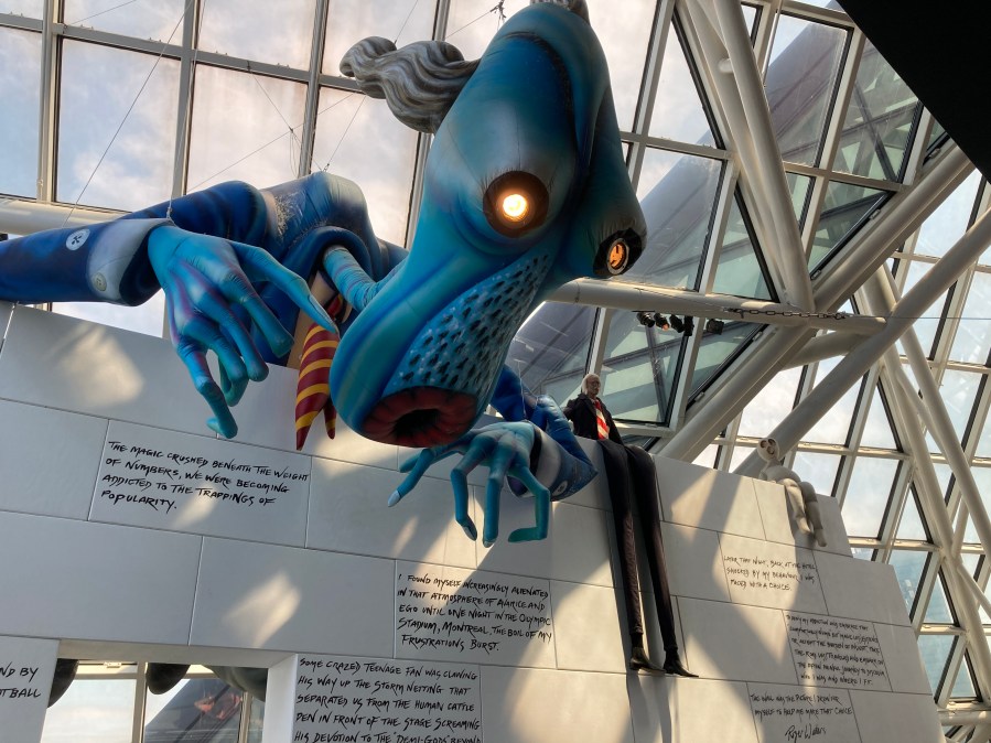 Well, starting out with a few days in Cleveland made a visit to The Rock and Roll Hall of Fame inevitable; it’s been almost thirty years since I set foot in its controversial precincts. (In fact, I’d argue that any hall of fame, no matter its subject, is about controversy — who’s in, who’s not, who should and shouldn’t be there. On such foundations are sports talk radio and the seething hatred of prog fans for Rolling Stone magazine built.) Has the R&RHoF improved in welcoming progressive rock since its fledgling days in 1997, when gigantic props from Roger Waters’ version of The Wall glowering from the top of its atrium (see above) were about the only evidence prog was even on its radar?