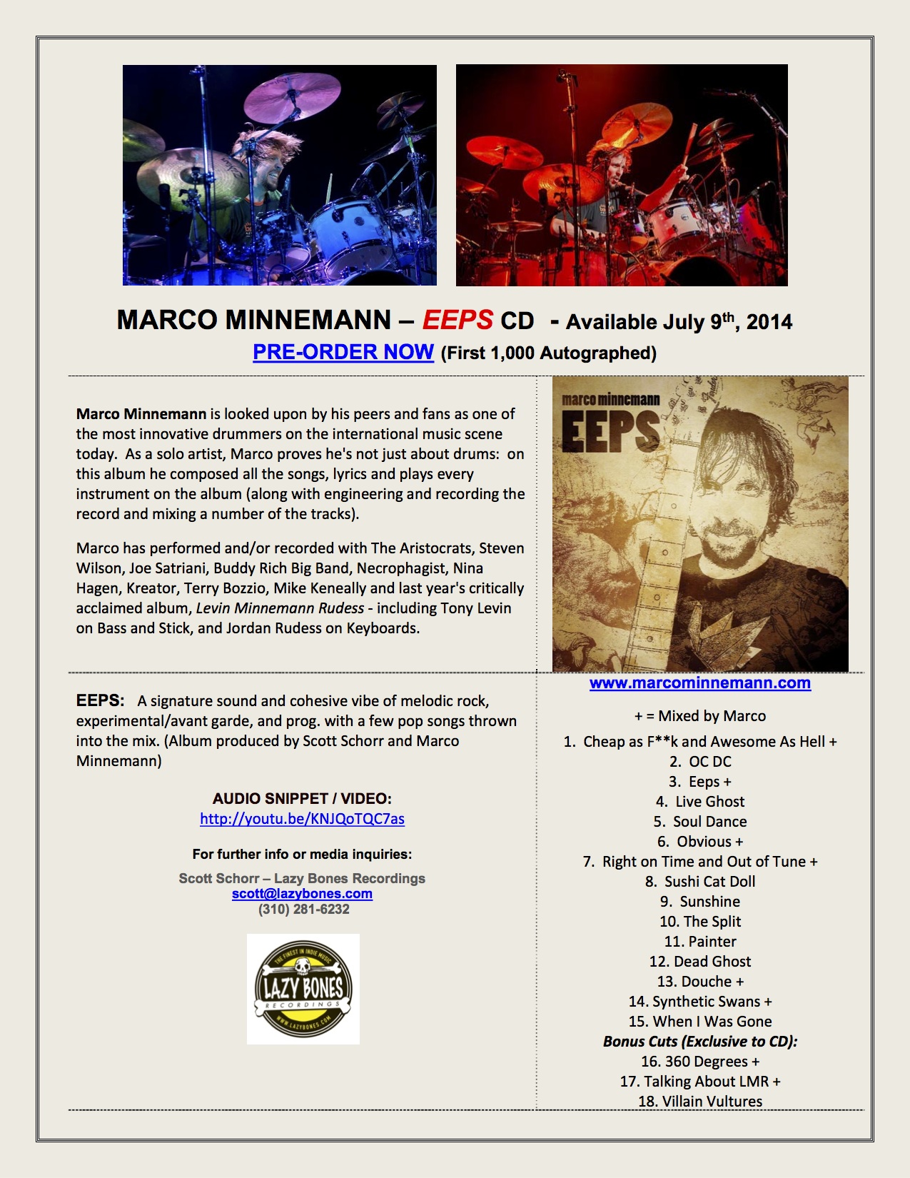 Marco Minnemann, one of the most in demand drummers in the world – and a talented multi-instrumentalist – is releasing what will surely be another excellent album. Entitled Celebration, the album will be released on June 1, and the first 1,000 CDs sold will be autographed. I have been a fan of Minnemann – who plays all the instruments on this release – since I first heard his work on Steven Wilson’s The Raven that Refused to Sing (And Other Stories). His solo work has been widely praised (deservedly so), and I expect great things from this new release. If you would like to pre-order Celebration, you can visit http://www.lazybones.com.