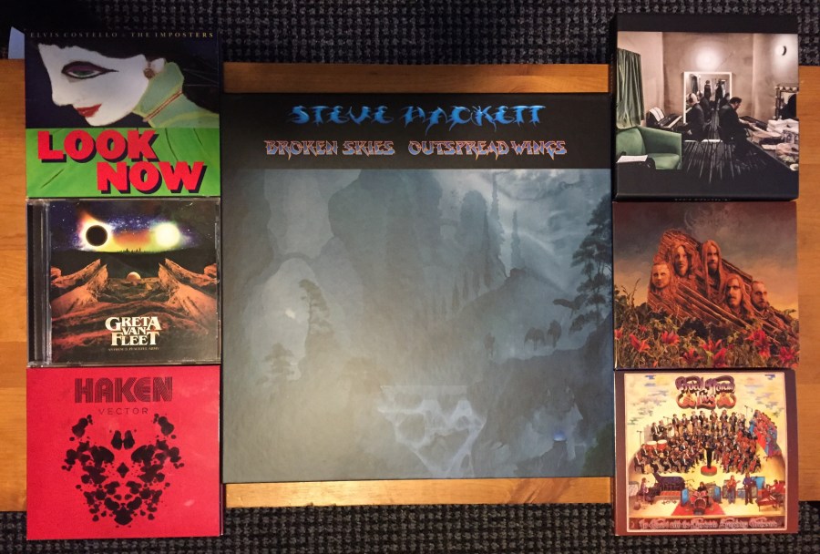 Steve Hackett, Broken Skies – Outspread Wings (1984-2006). Esoteric Recordings reissue box set (6 CDs + 2 DVDs). Pre-order autographed copies from Hackettsongs.